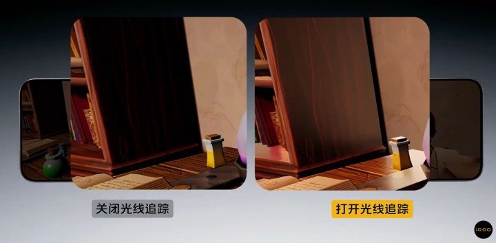 而这样的屏幕,配合上自研电竞芯片 Q3,还能实现游戏视效的全新升级,该机支持全场景光线追踪,开启光追后昏暗游戏画面立马变得清晰且细节分明,还有2K+144FPS超分超帧,让你不错过每一个游戏画面细节,游戏清晰度和流畅度瞬间提升。